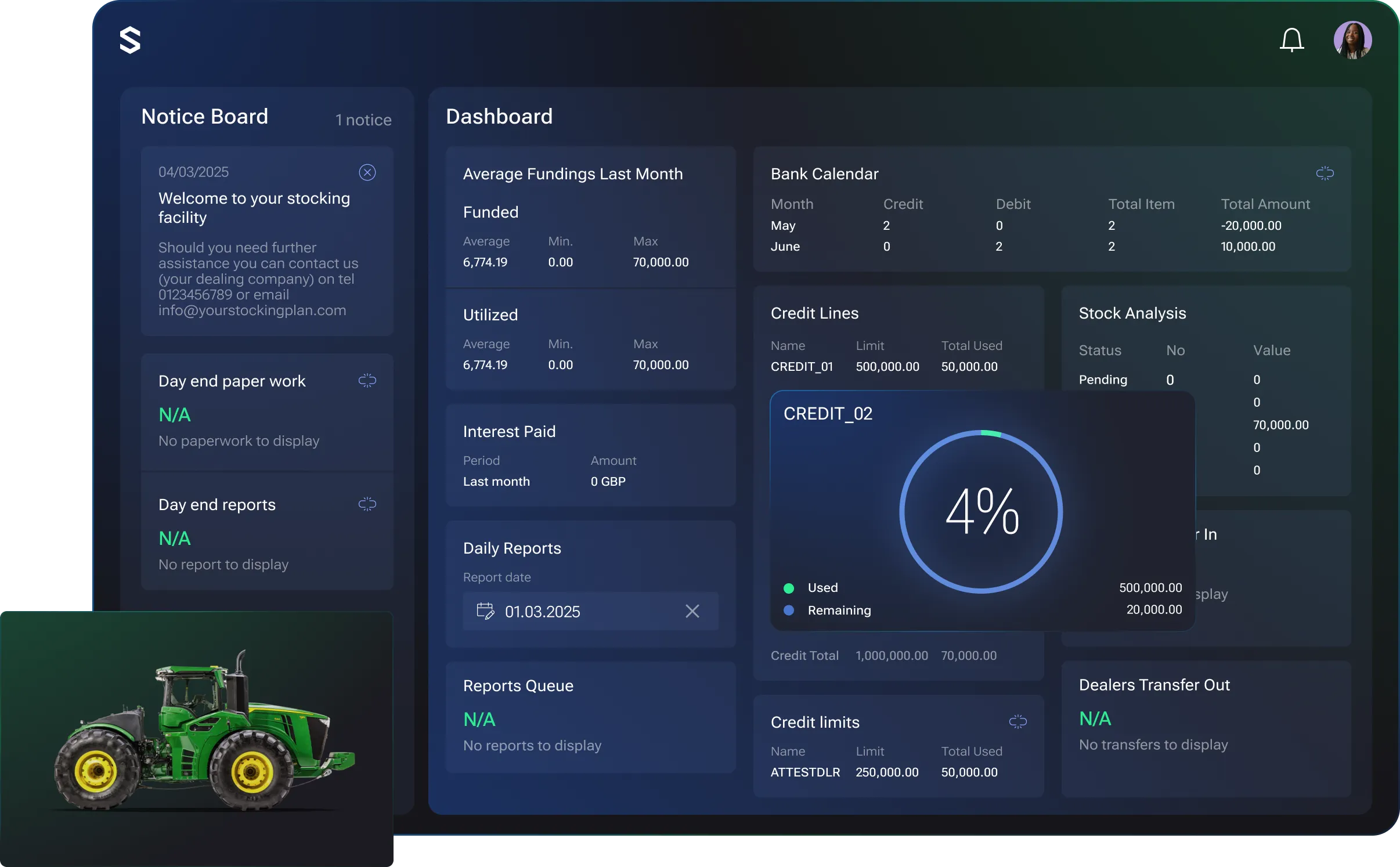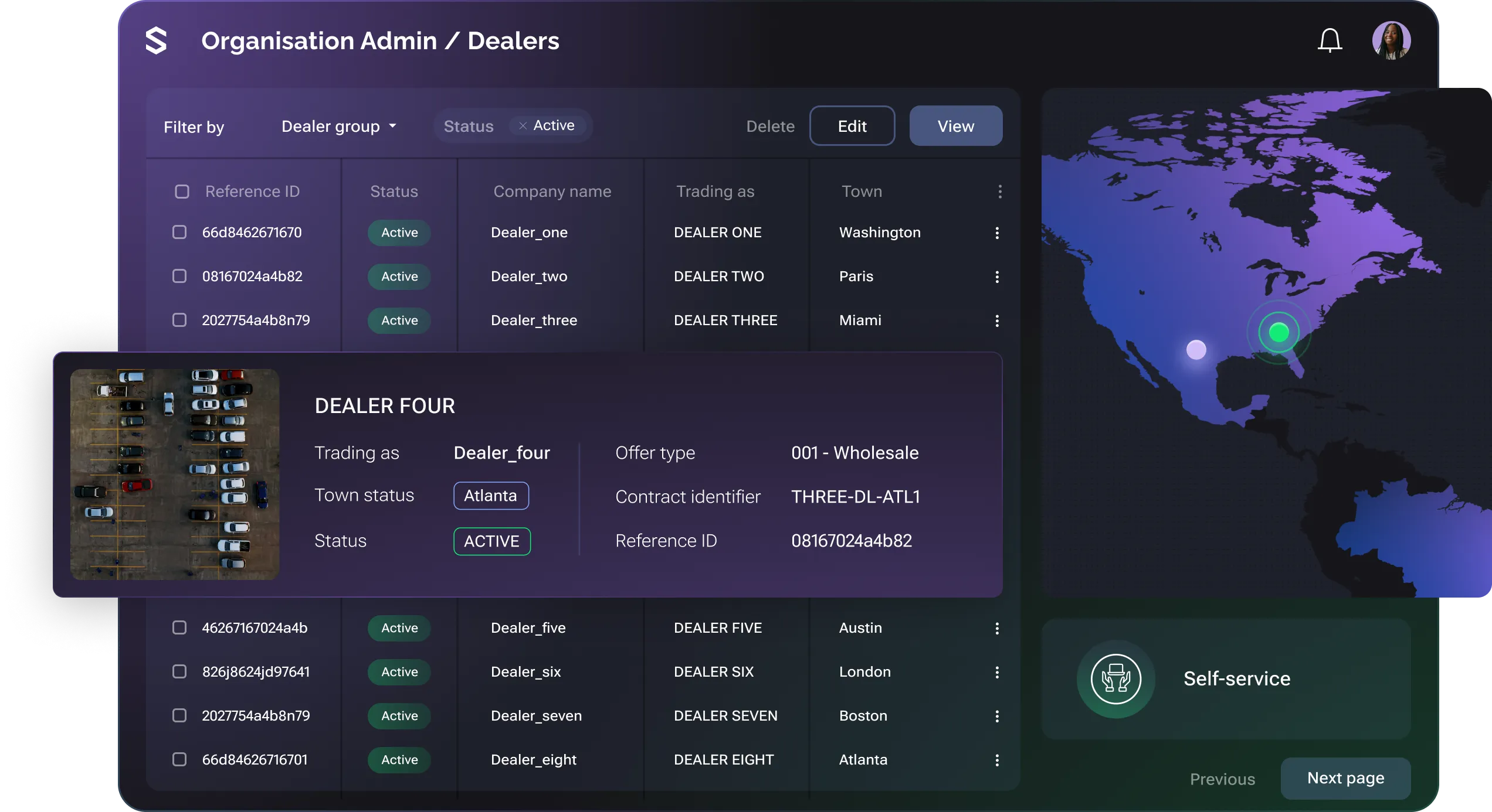 Our easy-to-use self-service dealer portal enables authorized end-users to directly track and manage their portfolios through an intuitive user interface or via API requests, providing greater control and efficiency in operations.