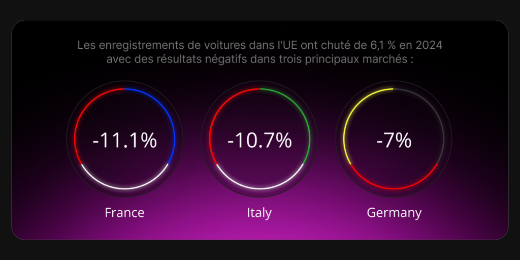 Par ailleurs, le secteur automobile européen a connu un recul en 2024, avec une baisse de 6,1 % des enregistrements de voitures dans les deux tiers des pays de l’UE et une légère diminution des ventes de VE (de 14 % à 13,1 %).