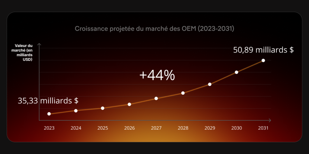 La wholesale finance joue un rôle essentiel en soutenant les entreprises de toutes tailles à travers le monde, pour les aider à améliorer leurs opérations commerciales. Les recherches montrent que le marché des OEM, évalué à 35,33 milliards de dollars en 2023, devrait atteindre 50,89 milliards de dollars d’ici 2031. Mais, bien que le secteur connaisse une croissance importante, il doit proposer des solutions numériques sur mesure pour soutenir un éventail plus large d’opérations, telles que l’onboarding, la prise de décision, l’identification des risques, la gestion des services ou encore les audits.