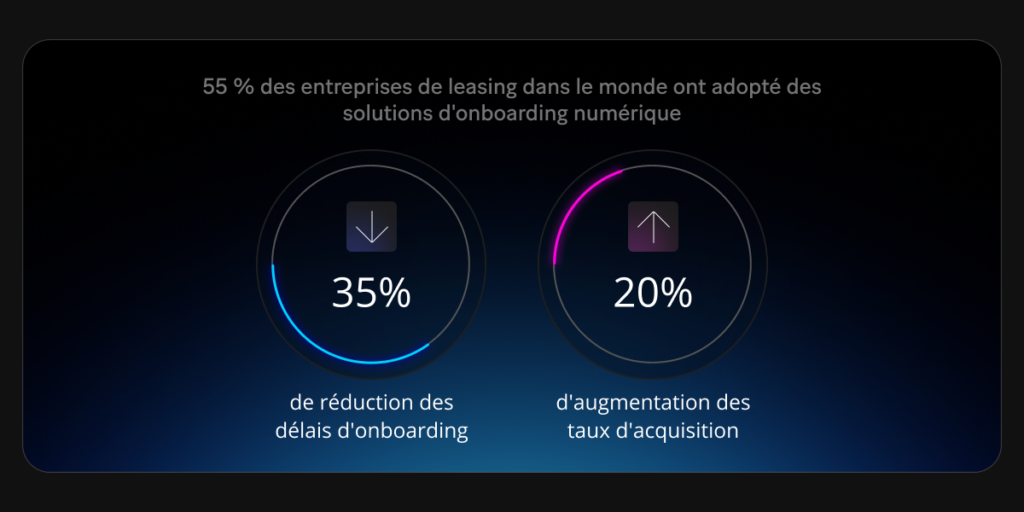 Selon le 2023 World Leasing Yearbook, qui porte sur les marchés mondiaux du crédit-bail et du financement d’actifs, jusqu’à 55% des sociétés de leasing dans le monde ont adopté des solutions numériques d’onboarding. Cette étude montre qu’en conséquence, les délais d’onboarding ont diminué de 35 %, tandis que les taux d’acquisition de clients augmentaient de 20 %. En revanche, les experts affirment que l’automatisation complète du processus ne convient pas à toutes les entreprises. C’est à ce niveau que l’intelligence artificielle (IA) et l’apprentissage automatique (ML) peuvent être utilisés pour réduire le besoin d’intervention manuelle.