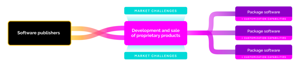 However, the positioning of software publishers is more complex since it needs to address the largest players in the market to be able to build a dedicated solution, based on software or components, guaranteeing accelerated implementation, and scalability over time. Furthermore, the trend of being able to offer varying solution models where the product is obscured with preference given to the service is now fast accelerating. In markets such as banking or financial services, the publisher must choose between partnering with other professionals or gradually transforming itself into a software publisher/provider.