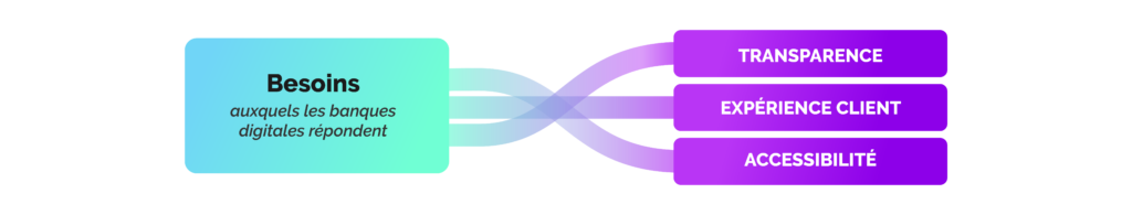 Tout d’abord, les banques digitales ont tendance à cibler des consommateurs ultra-connectés qui souvent se sentent délaissés par les banques traditionnelles. Certains besoins auxquels les banques digitales répondent comprennent :