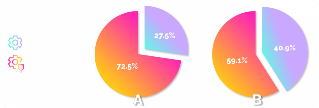 We also assessed the stated preference of our users, which was also notably positive on the personalized journey. In this case, the order of the tests did have an effect on preference, but the customized journey was still a clear favorite for most users.