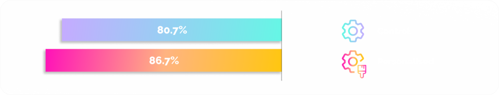 Our results showed that, by significant margins, the customized journeys outperformed the control. To assess the effect of personalization on buying behavior, we used perceived usability and satisfaction as a proxy for conversion. To achieve this, we looked at two primary indicators: