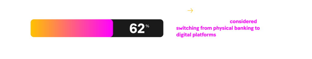 As a result of a crisis, customers were forced to use digital banking services, creating a surge in adoption essentially overnight. And the trend away from physical branches toward digital channels is likely to be permanent. According to Mastercard’s European evolution of banking study, 62 percent of banking customers considered switching from physical banking to digital platforms in 2020.