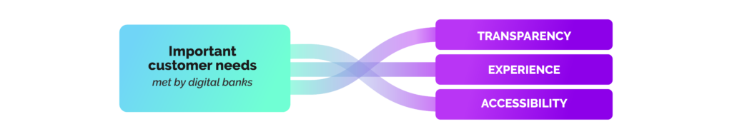For a start, digital banks tend to target digital native customers who, oftentimes, feel neglected by legacy banks. Some important customer needs met by digital banks include: