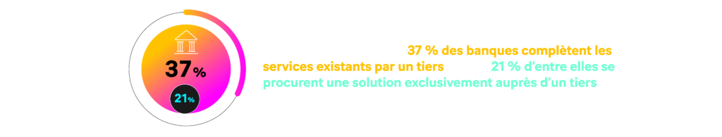 D’autre part, notre étude montre que 37 % des banques complètent les services existants par un tiers, et que 21 % d’entre elles se procurent une solution exclusivement auprès d’un tiers. L’expérience montre qu’une telle approche est préférable. En s’appuyant sur l’expertise spécialisée d’un partenaire de confiance, les banques et les organismes de services financiers peuvent tirer parti d’une solution éprouvée et de l’expérience qui l’accompagne.